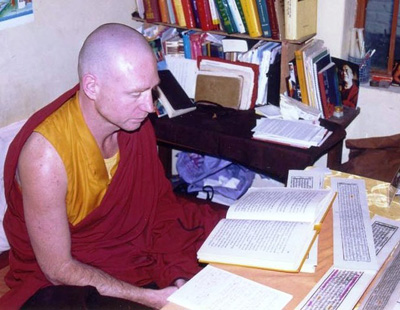 Buried behind ancient Buddhist manuscripts written in intricate Tibetan script sits Venerable Tenzin Josh in the lotus position of monks, head shaven and wrapped in maroon robes. His simple cell with its wooden desk and mattress in Dharamsala's Buddhist School of Dialectics belies his previous incarnation as Steven Gluck, a scion of well-off Jews in London.
